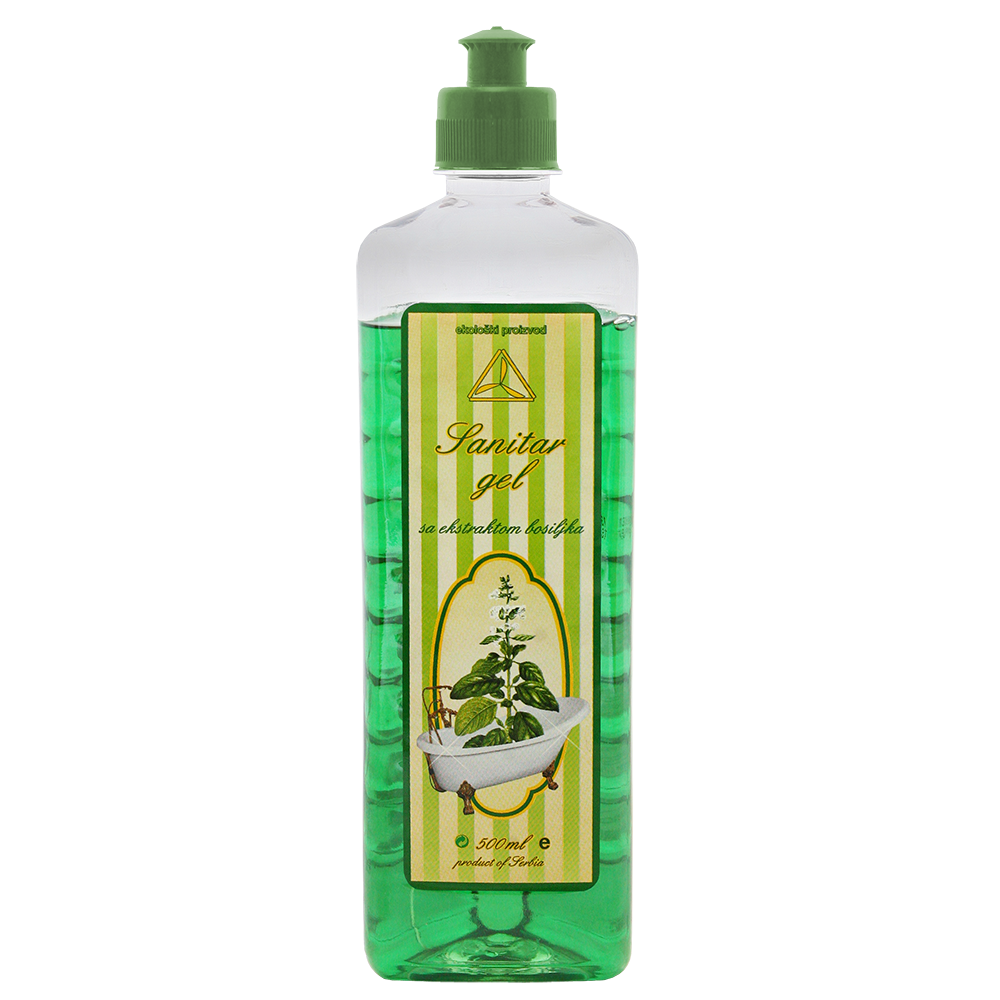 Sadrži ekstrakt bosiljka i miris borovine. Nema kiselina, tako da ne iritira kožu, ni disajne organe. Koristi se za redovno održavanje sanitarija i keramičkih pločica, koje istovremeno dezodoriše, jer je vrlo prijatnog i osvežavajućeg mirisa. Nanesemo nerazređen gel na uprljanu površinu u tankom sloju, ostavimo da deluje 15-ak minuta, blago istrljamo i isperemo. Na tretiranoj površini ostavlja zaštitni film na kojem se ne zadržavaju kapljice vode, masnoće i prljavština. Možemo njime namazati i druge površine u kući koje češće diramo rukama (kvake, stolove, stolice...). Ako u prskalici razmutimo malo sanitar gela i vode, dobićemo efikasan osveživač prostorija. SASTAV: <5% anjonskih PAM i nejonskih PAM. Sadrži dodatno: miris, ekstrakt lekovitog bilja, Methylchloroisothiazolinone, Methylisothiazolinone, boju.